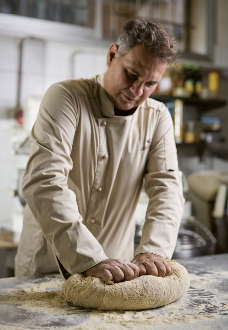 Ci deve essere una strana alchimia del pane che chiama a sè le persone, anche Rocco Tanzarella racconta che il pane per lui è stato una rinascita: fotografo free lance con incarichi importanti - tra cui Vogue - e viaggiatore indefesso un giorno ha deciso di fermarsi per fare il pane. L’idea? Portare il pane di Altamura a Londra. “Rompe i denti, non lo vorrà nessuno, mi dicevano. Ma io lo volevo e così ho deciso di imparare, ho chiamato dalla Puglia un anziano panificatore Antonio Vitale e ho studiato e ancora studio. Il pane è un gioco di equilibri in cui tutto si deve bilanciare: l’aria, l’acqua, la farina, le mani, la temperatura e poi c’è il tempo. Più tempo gli dai e meglio viene, qui inforniamo il pane due volte. Lo prepari, poi lo sforni e deve stare sui carrelli 12 ore e poi tornare in forno e riposare di nuovo: così che la crosta si caramellizza, si sigilla mantenendo la mollica protetta, cos  rimane al sicuro e buona anche per 7 o giorni, la crosta magari indurisce ma se lo apri il cuore rimane soffice e gustoso.